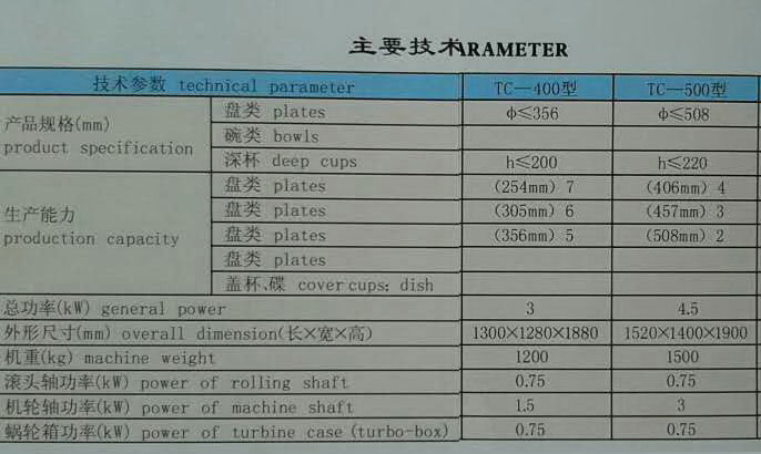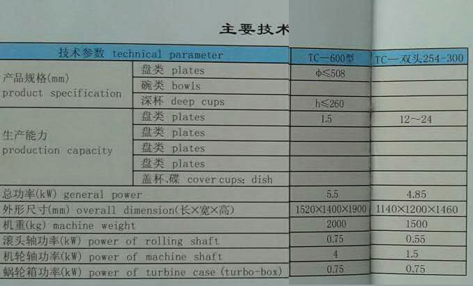 陶瓷機(jī)械設(shè)備主要參數(shù)一覽表